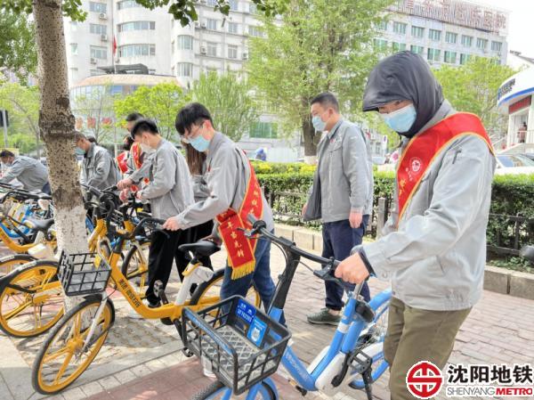 地铁集团总部机关志愿服务队有序摆放共享单车