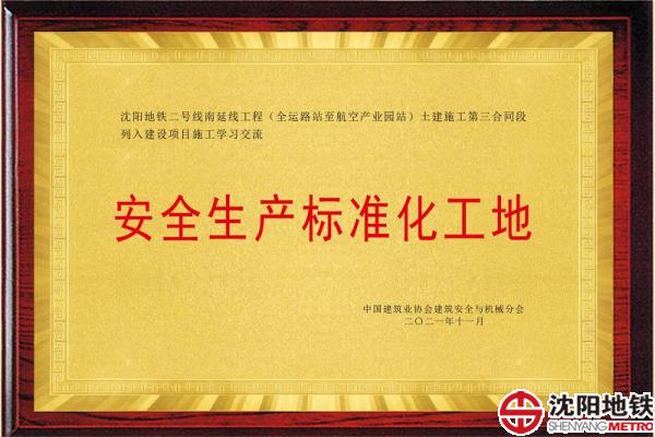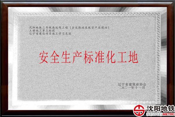 【振兴新突破 我要当先锋】系列报道——沈阳地铁二号线南延线3标荣获辽宁省“安全生产标准化工地”、国家级“安全生产标准化工地”荣誉称号