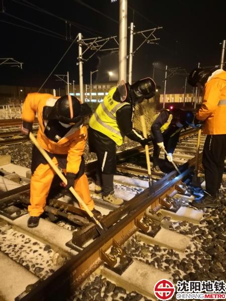 以雪为令,接到暴雪预警后沈阳地铁迅速启动应急响应,提前对冬季防寒设备设施及物资再次开展自检自查,确保除雪铲、除雪装载机等除雪物资设备数量充足、状态良好,随时做好抢险准备。自降雪开始沈阳地铁近两千余名员工迅速行动开展除雪抢险及运营保障工作,各车站视积雪情况定期清扫出入口积雪,铺设防滑垫,加强积冰和站内积水清理,并加强站内广播,提示乘客注意出行安全。在保障地铁正线安全运营的同时,场段除雪队负责重点防范道岔转辙机冰冻灾害,夜间每小时巡视、除雪除冰,并结合实际状态加密处置或在室外设备旁值守。接触网除冰队定期巡视接触网结冰情况,发现结冰情况及时进行打冰处理,避免发生影响列车运行情况发生。