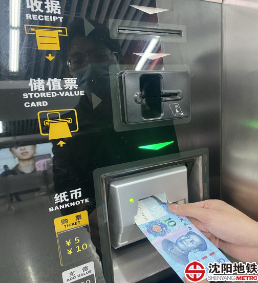 (2)自动售票机接收1元、5角硬币和面额为5元、10元(9、10号线也可接收20元)纸币,纸币需平整逐张插入纸币接收口。